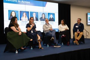Following the icebreaker, CREW Ambassadors and Envoy leaders — Nancy Rivera, Chanen Lively, Migdoel Rosa, Deesha Desai and Jude Mayeux — led a panel conversation called “Culture in Action” about how to bring the ideals of CREW into every layer of Envoy.
