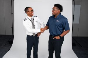 this was taken for our uniform guide so we used cutouts of the pilots for our final document. I can change/remove the background if we choose to use this photo. pilot w/ cadet instructor (training)